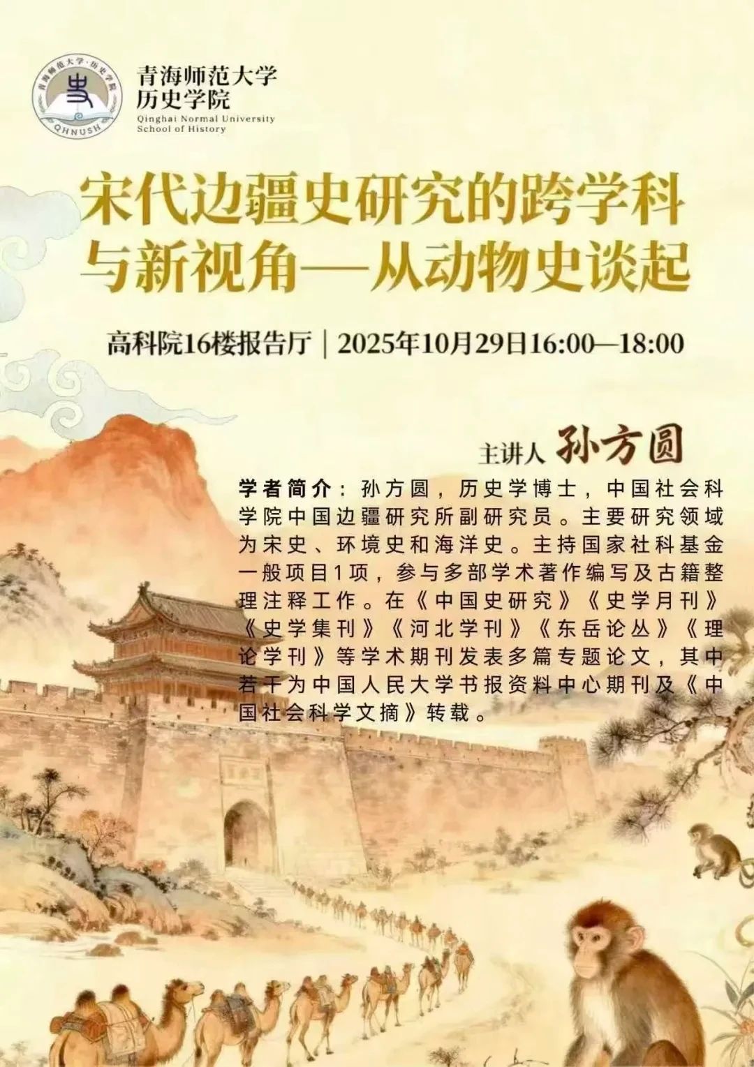 【讲座预告】孙方圆:宋代边疆史研究的跨学科与新视角——从动物史谈起