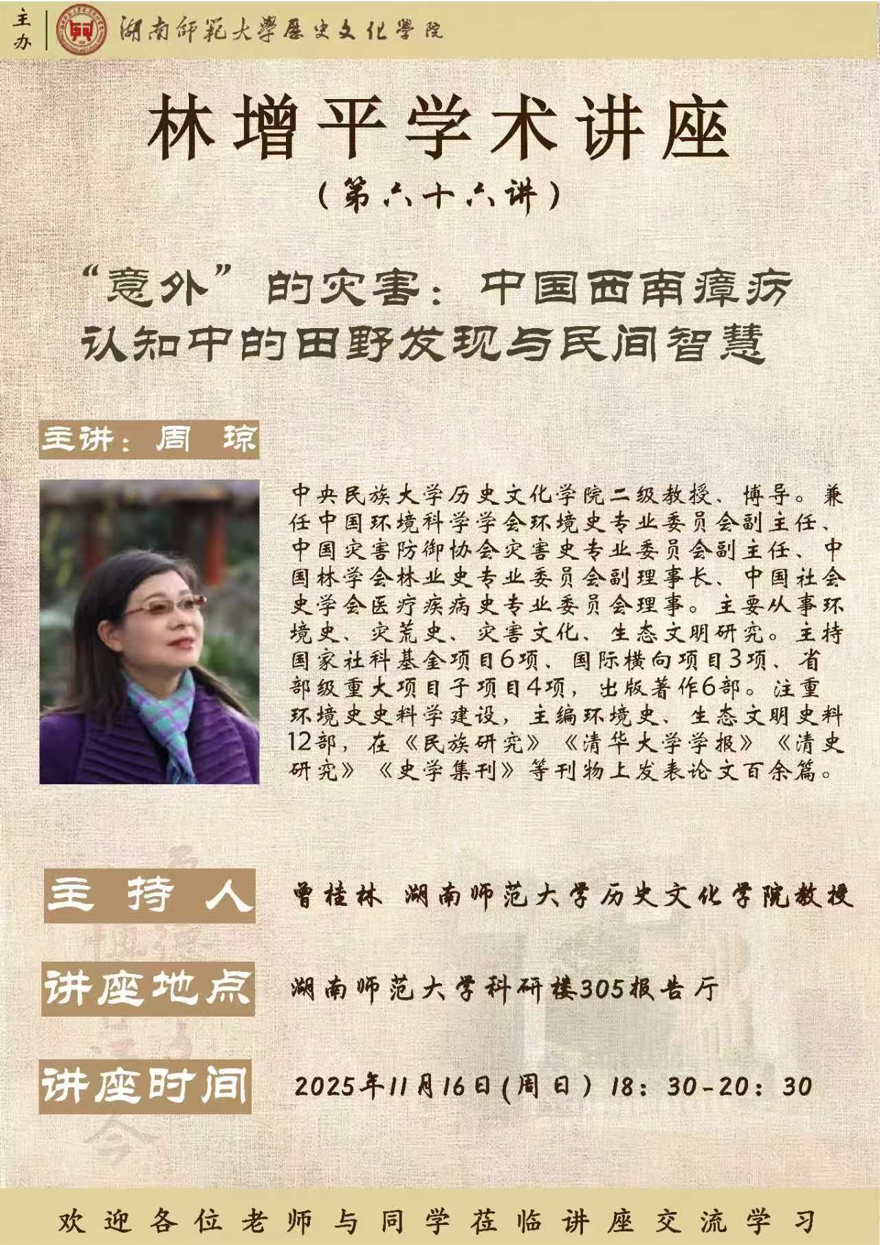 【讲座预告】周琼:“意外”的灾害:中国西南瘴疠认知中的田野发现与民间智慧